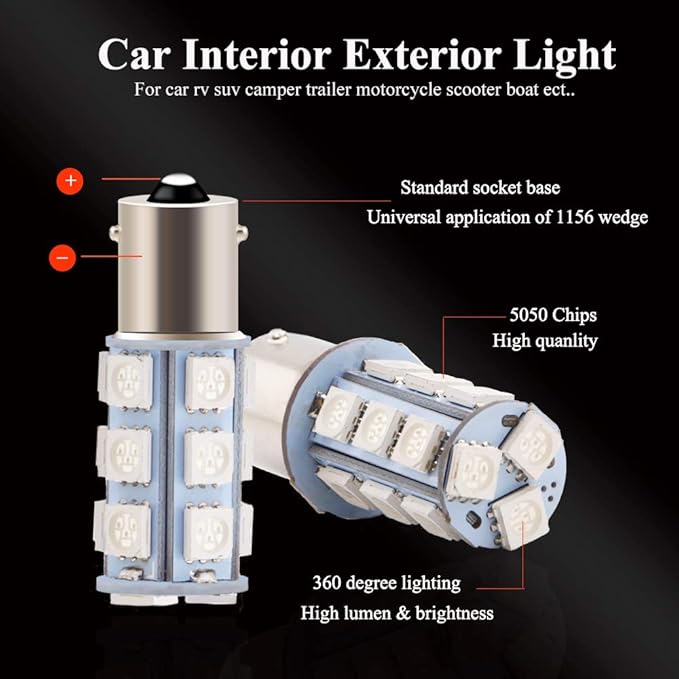 - 【Warranty】We offer "One YEAR" Warranty. 1156 led bulb widly used for Car Rv SUV Camper Trailer Truck Motorcycle Motorhome Boat Marine Replacement Interior Light and Exterior Light Bulb, if have any problem about the lights please contact us to solve.