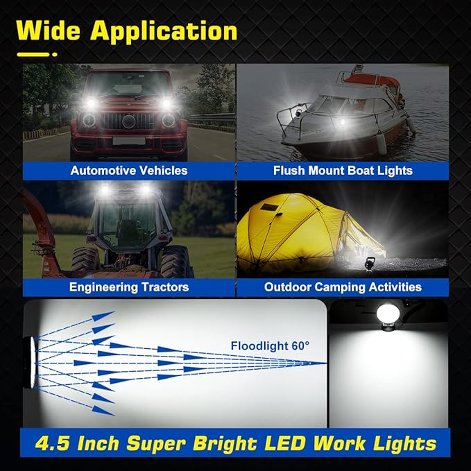 - ★ Widely Application: Indoor and outdoor uses, backyard lighting, garden lighting, off-road lighting, back-up lighting, construction lighting and so on. Also suitable for emergency road repairs, outdoor camping activities.
