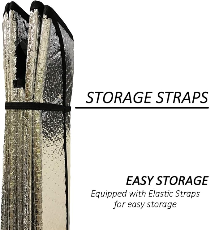 - ★【Easy to Use and Store】: Sun shade for car windshield with suction cup attached,easy to install and no harm to the window of your car.Vehicle windshield sunshade is easy to fold in a compact design, side shades can pop out and fold down soon. All of them take minimum space to store in your car. Elastic strap keeps shade folded during storage.