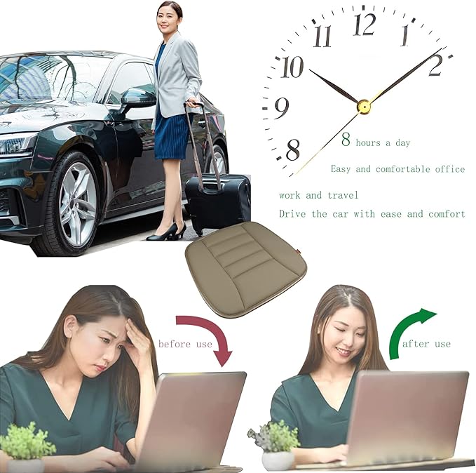 Car Seat Cushion Pad for Driving Seat Cushions for Office Chairs/Truck Memory Foam Seat Cushion Comfortable and Durable,Khaki