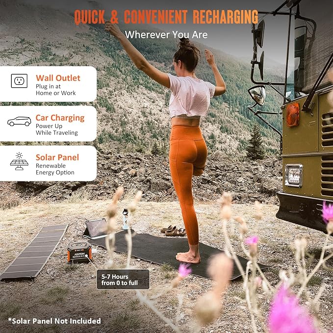 - ▲ Multiple Output Options: Features a 100W AC outlet (150W peak), 3 USB ports (including USB-C), and 12V DC port, giving you versatile connectivity for all your devices. Stay connected and powered wherever life takes you.