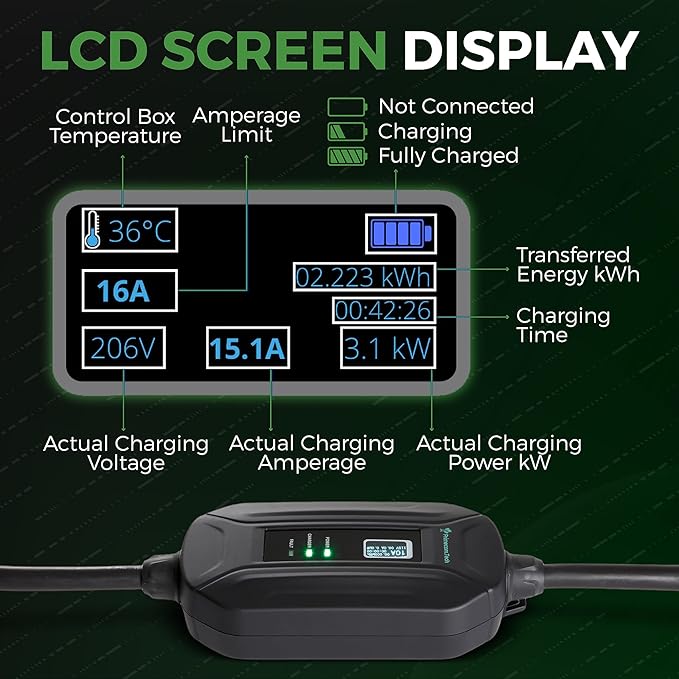 - SAFE AND SECURE - Primecom Level 2 Chargers have passed multi point rigorous tests to ensure quality and safety measures. T V German Equipment and Product Safety Certification, CE️ certifications, UL️ Listed Cable Certifications, along with 12 other built in safety features such as, lightning-proof, leakage protection, overvoltage, overheat, overcurrent protection, UL94V-0 rating flame resistance, IP65 rating waterproof and are safe to use outdoors for snow, rain, dust...
