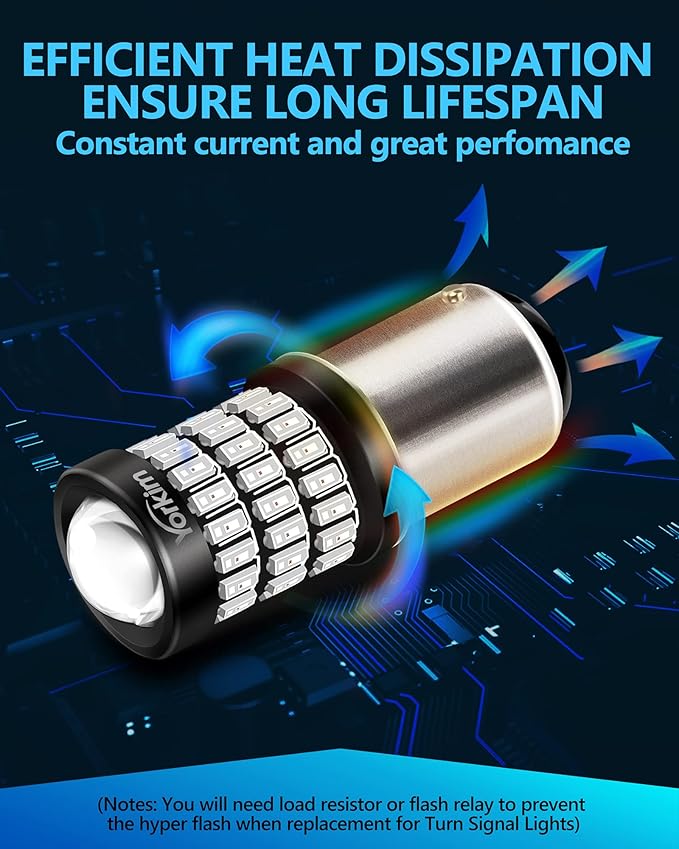 - 【SPECIFICATION】 - **Note for Turn Signal LED Bulb** 50w 6ohm Load Resistor (ASIN:B07KS6KMYG) is needed to prevent hyper flash or error code. Head diameter 15mm, Length 39mm, Voltage 12v-24v, Extremely bright output 1600LM/Bulb