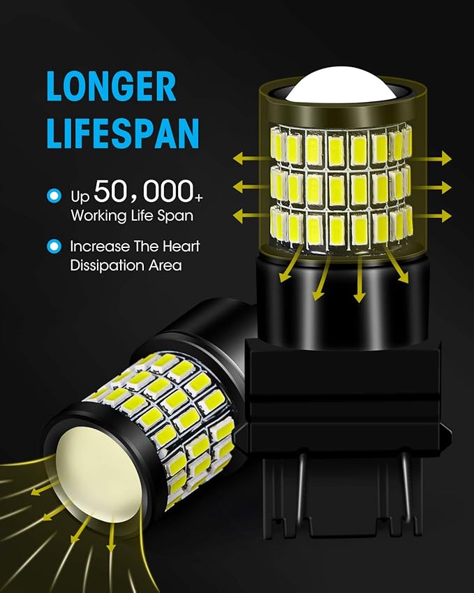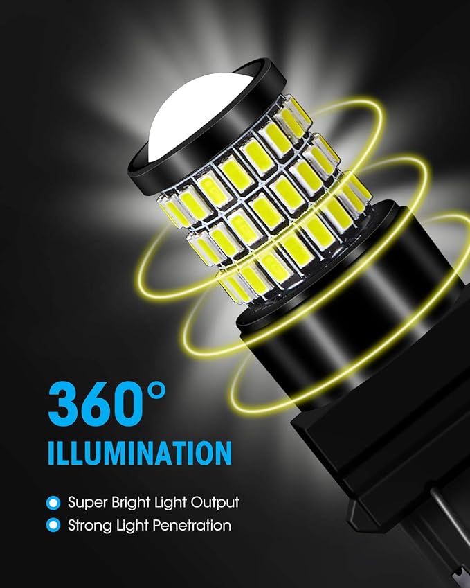 - 【360 Degree Illuminating】Each 3157 led bulb is 360 degree powered by 54smd 3014 and 4smd high performance 3030 chipsets with HD projector to ensure optimal visibility and stronger light penetration