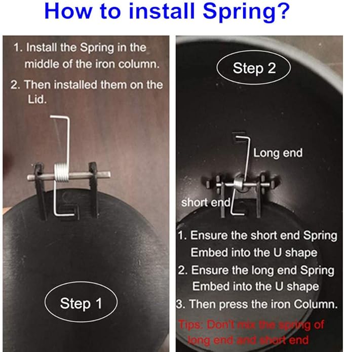 - 3.Upgraded Spring Clasp: With the easy bounce cover design, improved spring clasp is more stable. No matter how many times you open the lid, the spring leg is very firm to prolong the garbage can's lifespan.