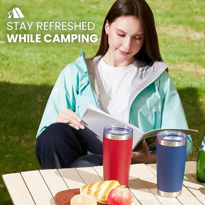 - DURABILITY- 18/8 food grade stainless steel body, No BPA, healthier than plastic cup. The insulated tumbler never sweat due to the Vacuum insulated design. Powder coating on the outside fits more comfortably in your hand, looks good, anti-slip