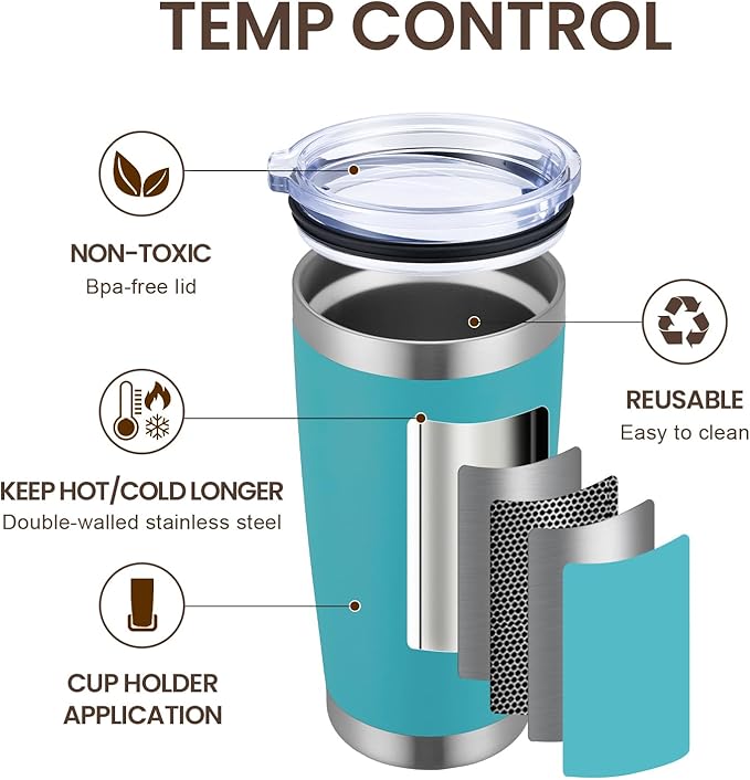 - DOUBLE WALL VACUUM INSULATION: Enjoy Beverage Cold or Hot Under normal temperature, it can keep a tumbler of ice cake for 12h until the ice totally melt, or hot coffee warm for 6h