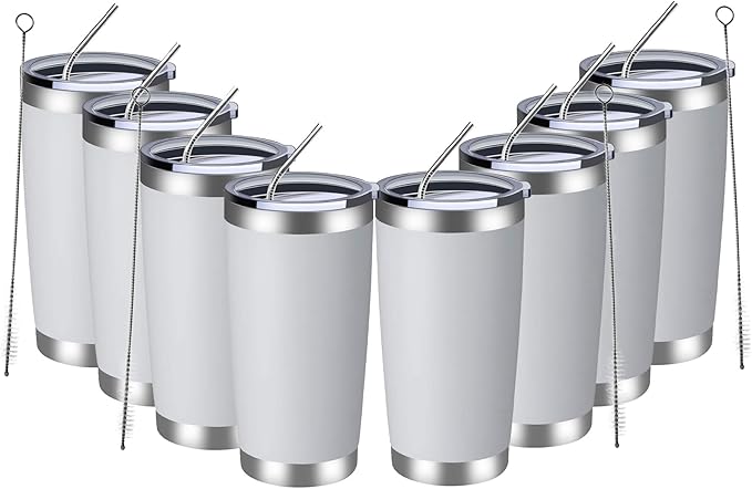 MEWAY 20oz Tumbler 8 Pack Double Wall Vacuum Insulated Travel Mug Bulk, Stainless Steel Tumblers with Lid and Straw, Durable Powder Coated Coffee Cups for Cold & Hot Drinks (White, 8)