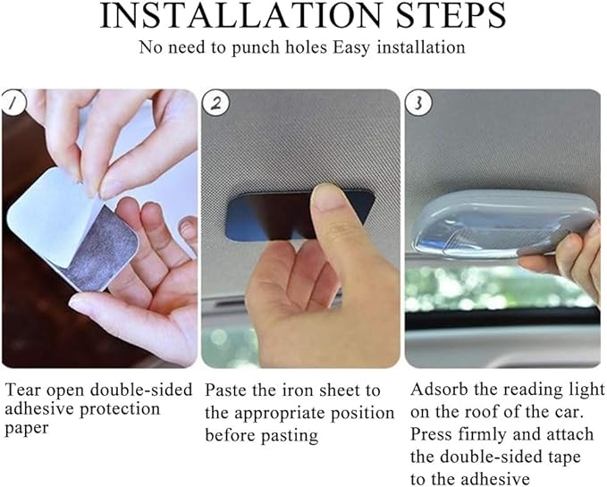 - š¦ćNo Damage InstallationćThe light is easily installed on the car ceiling by magnetic absorbing with double sided adhesive tape fixing, which doesn With magnetic, easy to install. You can install it anywhere.