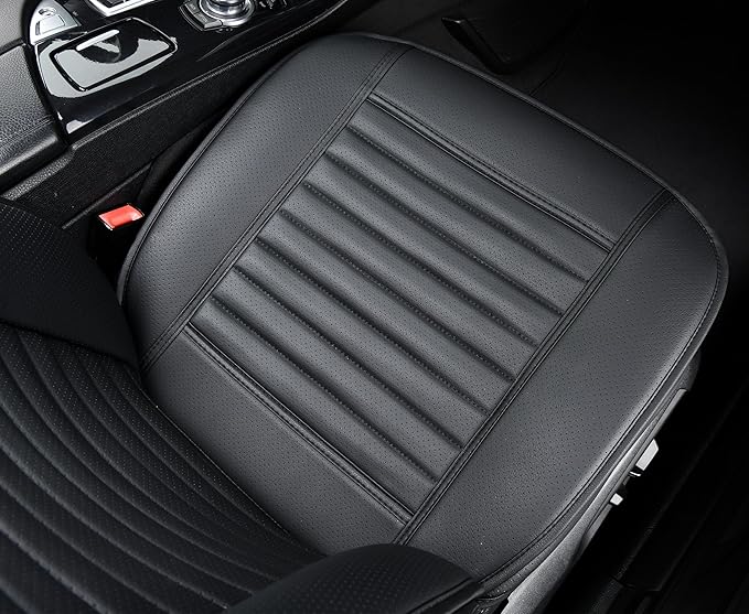 - ✅Premium PU Leather Material-The auto seat cover is made of high-grade soft PU leather, waterproof, easy to scrub, durable and good breathability. Built-in a layer of highly flexible sponge, four seasons applicable. Maintain the comfort of the buttocks, helps relieve pressure on hips and thighs from driving for a long time. At the bottom of cushion is rubber sole which prevent falling off from your car driver seat.