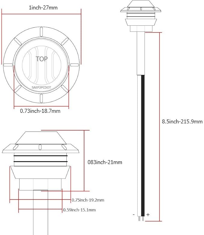 - Light Size: 0.7” x 0.8” x 0.8” (W x L x H) without Rubber Grommet and 1” x 0.8” x 0.8” (W x L x H) with Rubber Grommet. Simple Connection: Free end wires are included; Black is positive, and white is negative.