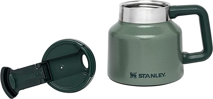Stanley Tough-To-Tip Admiral's Mug 20 oz | Twist-on Flip Open Lid | Wide Body with Non-Skid Rubber Base | Insulated Stainless Steel Coffee Cup | BPA-Free | Hammertone Green