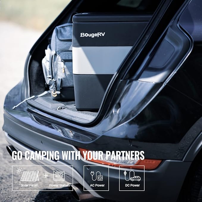 - 53 Qt car refrigerator: With CE and FCC certification, the 53QT Refrigerator encloses 2-year tech support for the compressor and other accessories. If you have any questions, please reach out to BougeRV FIRSTLY, and we will provide a better solution