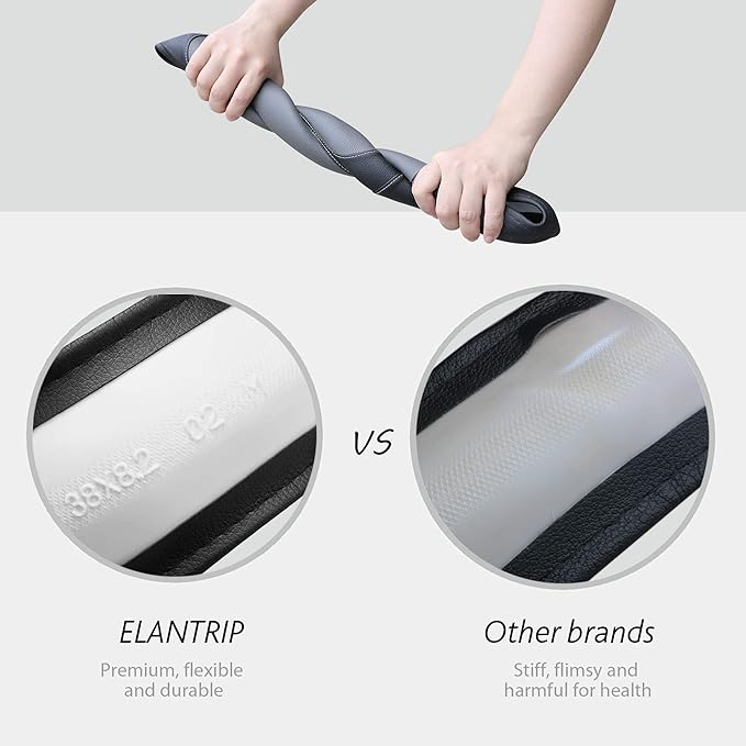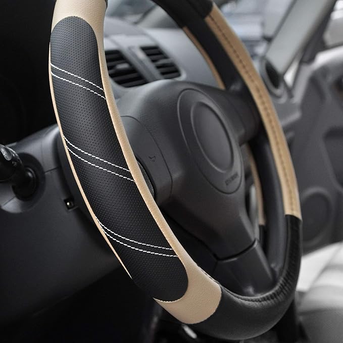 Elantrip Steering Wheel Cover Leather 15 1/2 to 16 inch Universal Large Soft Grip Breathable for Car Truck SUV Jeep Anti Slip Beige