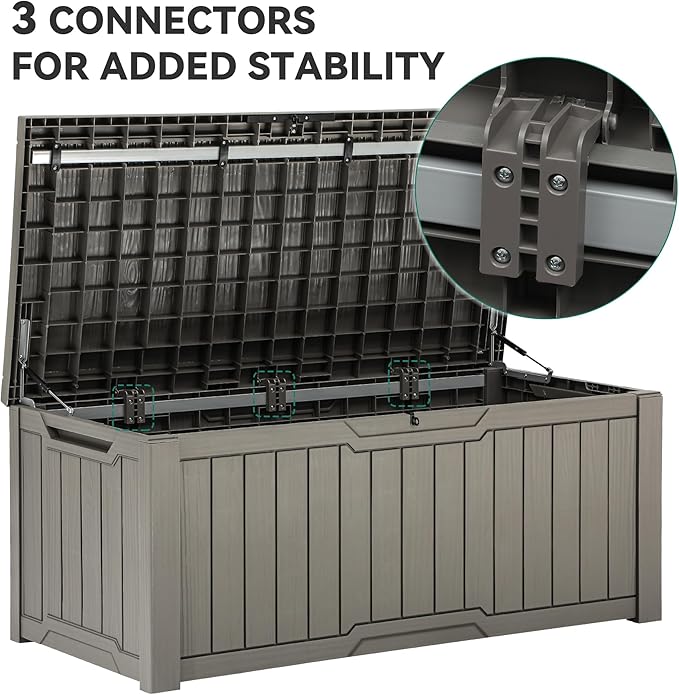 - HIGHLY DURABLE: Structured with all weather-resistant resin that prevents fading and rusting;Added Iron rods for deck box's extra support and strength.