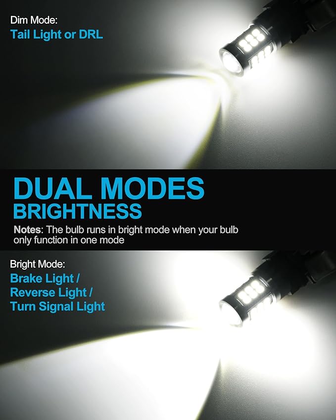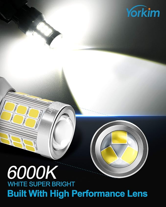 - 【HUGE IMPROVEMENT】- Yorkim 7443 LED bulb is built with 33-SMD 2835 LED chips, 300% Brighter than halogen bulbs, provides lots more light when going in reverse and brake