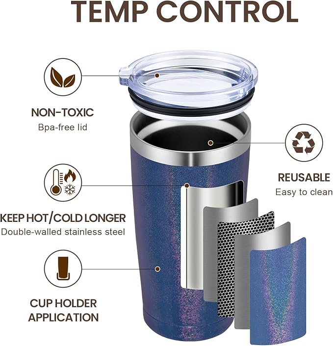 - DOUBLE WALL VACUUM INSULATION: Enjoy Beverage Cold or Hot Under normal temperature, it can keep a tumbler of ice cake for 12h until the ice totally melt, or hot coffee warm for 6h