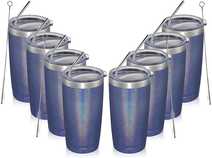 - [Package included]8*20 oz glitter tumbler, 8*splash proof cover with hole, 8*bend stainless steel straw, 4*straw brush