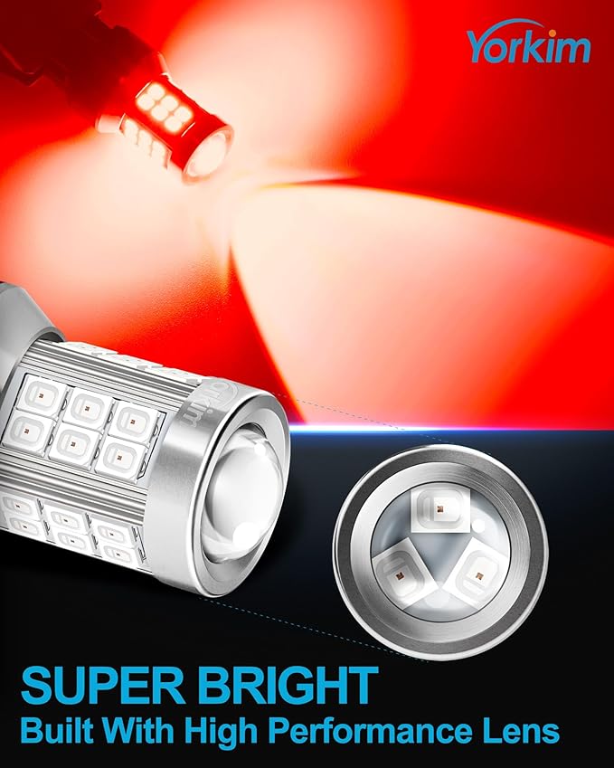 - 【HUGE IMPROVEMENT】- Yorkim 7443 LED bulb is built with 33-SMD 2835 LED chips, 300% Brighter than halogen bulbs, provides lots more light when going in brake