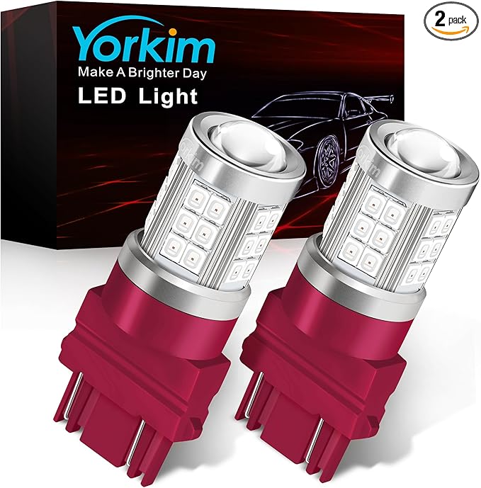 Yorkim 3157 LED Bulb Red 3157 led brake light bulb, 3157a led bulb 3156 led red lights 3056 3057 4157 bulb led 3157 Replacement Lamp for Stop Lights Brake Lights Tail Light Bulbs, pack of 2
