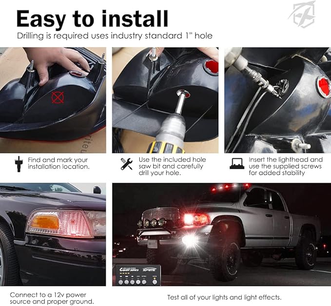 - EXTRA ACCESSORIES SOLD SEPARATELY: Extension 10FT Cable Wire; Replacement Amber LED Light Bulb. (Please notice that we are not responsible for compatibility issues with other brands and they only fit for Xprite 52013 Covert Series hideaway strobe lights kit.)