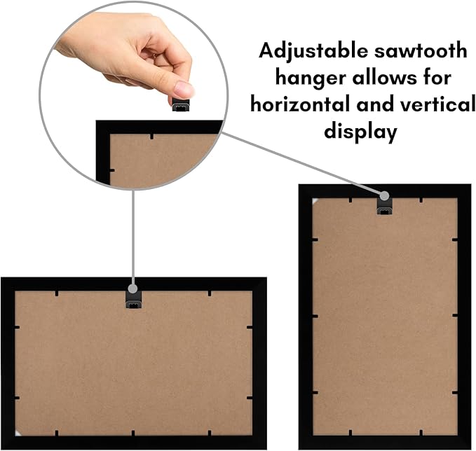 - Display it your way with ease! The black picture frames include hanging hardware for both vertical and horizontal placement, ensuring quick, hassle-free installation on any wall so your favorite memories will always be beautifully showcased.