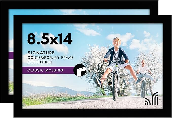 - Our 8.5x14 frames with classic molding are crafted from durable engineered wood (MDF) and display 8.5x14 photos. The shatter-resistant glass adds a pristine finish, making this stylish frame truly stand out.