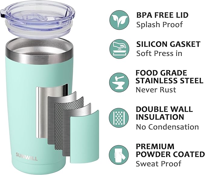 - Insulated Stainless Steel: SUNWILL 20oz coffee travel mug is with Double-Wall vacuum technology to keep drinks hot for over 6 hours and cold for around 24 hours.