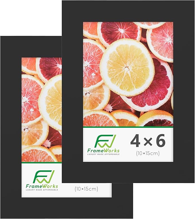 FrameWorks 2-Pack, 4x6 Picture Frame, Black – Classic Wooden Photo Frame with Tempered Glass, Modern Matte Finish for Prints, Posters, Certificates & Wall Decor – Gallery-Ready