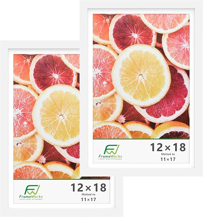 FrameWorks 2-Pack, 12x18 Matted to 11x17 Picture Frame, White – Classic Wooden Photo Frame with Tempered Glass, Modern Matte Finish for Prints, Posters, Certificates & Wall Decor – Gallery-Ready