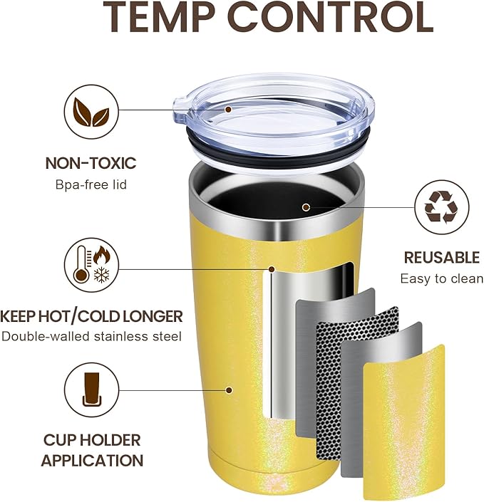 MEWAY 20oz Tumbler 12 Pack Double Wall Vacuum Insulated Travel Glitter Mug Bulk, Stainless Steel Tumblers with Lid and Straw,Powder Coated Coffee Cups for Woman(Rainbow Yellow,Set of 12)