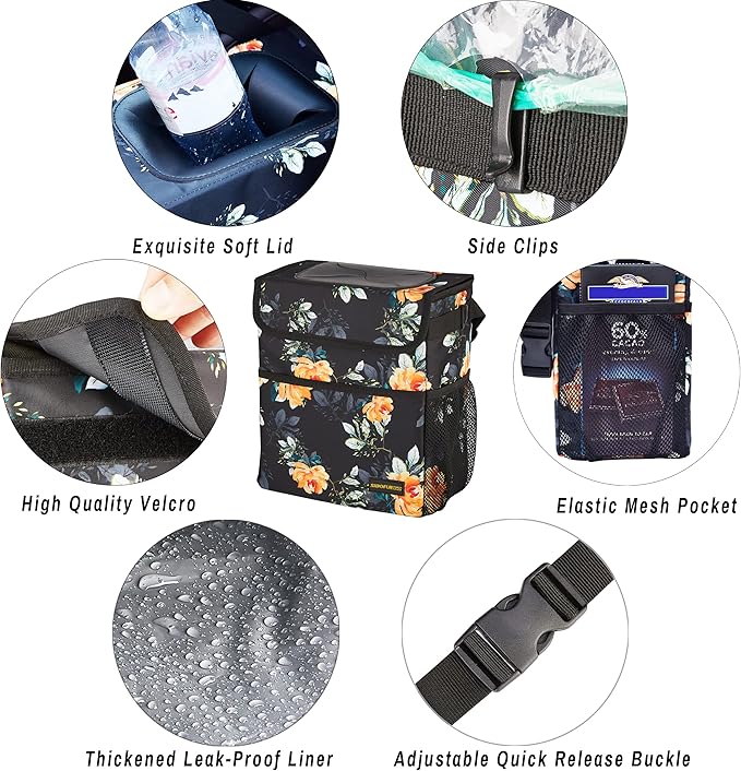 - 🌺 CAR TRASH CAN CUTE - Our car trash can comes with exquisite patterns, which can be a perfect car decor. It looks cute in the car and it always makes people can’t wait to put trash in it.