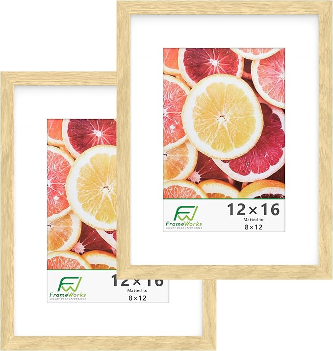 FrameWorks 2-Pack, 12x16 Matted to 8x12 Picture Frame, Natural Oak – Classic Wooden Photo Frame with Tempered Glass, Modern Matte Finish for Prints, Posters, Certificates & Wall Decor – Gallery-Ready