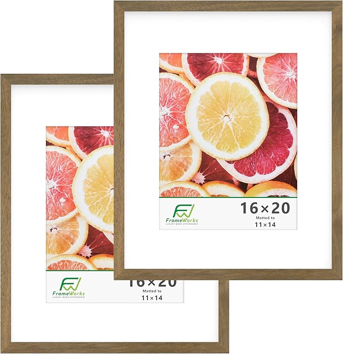 FrameWorks 2-Pack, 16x20 Matted to 11x14 Picture Frame, Dark Oak – Classic Wooden Photo Frame with Tempered Glass, Modern Matte Finish for Prints, Posters, Certificates & Wall Decor – Gallery-Ready
