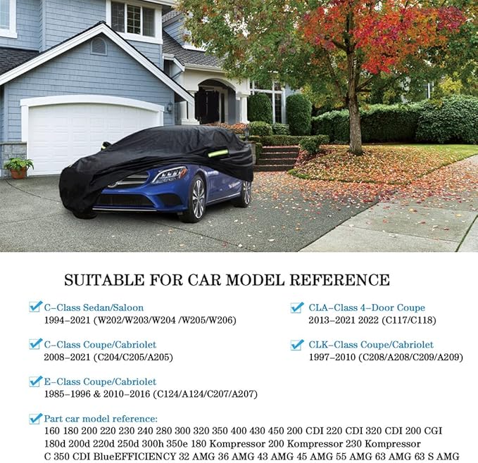 - Dimension: Abdeck customized car cover compatible with Mercedes-Benz C-Class C180 C200 C220 C300 C400 Sedan Coupe Cabriolet 1994-2025 (W202 W203 W204 W205 W206 C205 A205)/ CLK-Class CLK200 CLK 320 CLK 350 CLK 500 CLK 550 Coupe Convertible 1997-2010 (C208 A208 C209 A209)/ CLA-Class CLA 180 CLA 200 CLA 220 CLA 250 4-door Coupe 2013-2025 (C117 C118)