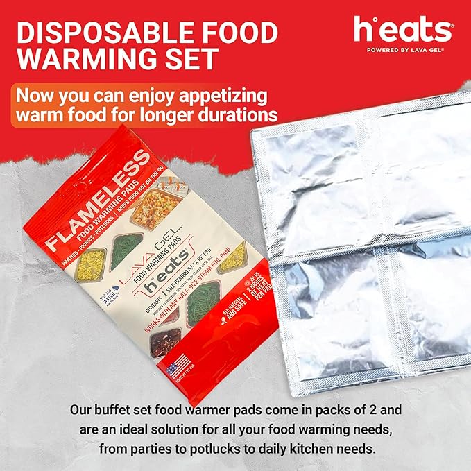- Easy to Use: Simply add tap water to your chafing dish or aluminum pan and place the h°eats pad inside, then add your food on top in the same size pan. These self-contained and reliable warmers keep your food warm for events and other occasions.