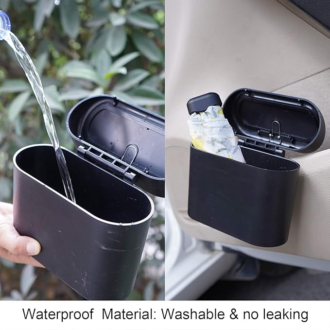 - MATERIAL-Made of sturdy plastic and silicon, which has strong toughness and is not easy to crack and more durable.It can be used for waterproof and is easy to clean. The portable garbage can helps keep your car clean & tidy. The litter holder is handy and convenient when you need to throw rubbish on a trip.
