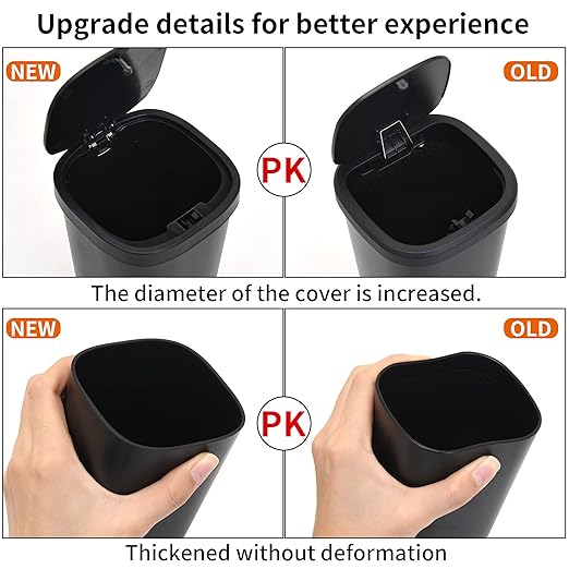- Easy to Use : Push-Button Pop Open cover which ensures the convenient using of the item. You could open and close trash can simply by pressing.Hide garbage to effectively prevent peculiar smell.