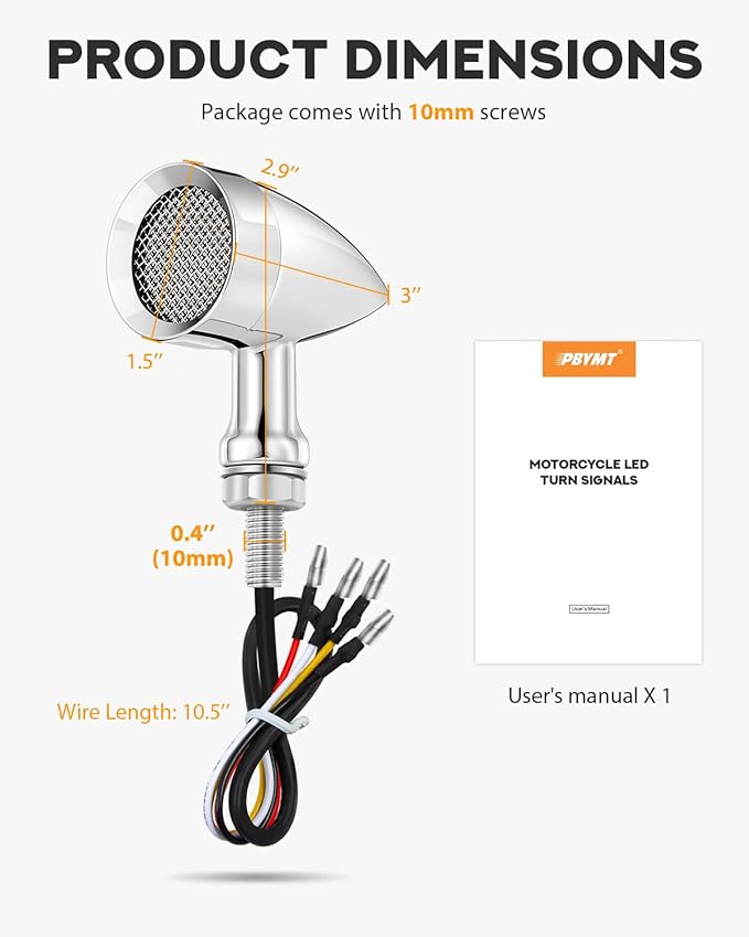 - VARIOUS APPLICATION - The bullet turn light is a versatile lighting solution designed to fit a wide range of applications, including motorcycles, eBike and more. With its IP67 waterproof, these LED motorcycle turn signals are made to withstand harsh weather conditions such as rain, fog, and even extreme environments.