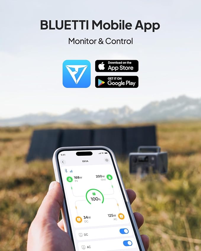 - [Harness the Power of Sun] - The built-in MPPT controller supports up to 200W of solar input, enabling you to make an ideal solar generator with BLUETTI 100W/200W solar panel.