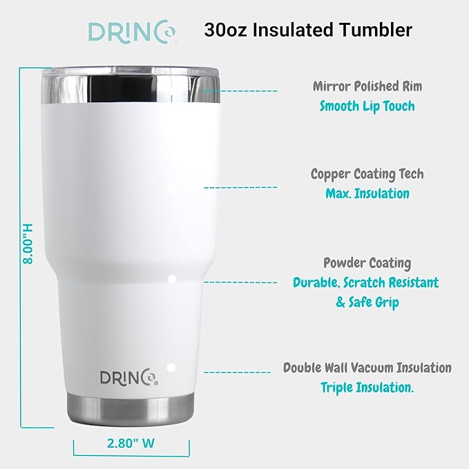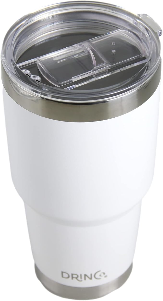 Drinco - 30 oz Stainless Steel Tumbler | Double Walled Vacuum Insulated Mug With Lid, 2 Straws, For Hot & Cold Drinks (30oz Artic White, 30oz)