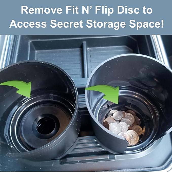 - FITS MOST CUPS - TALL CONTAINERS can get top heavy - fill the storage compartment with coins to ADD WEIGHT & stabalize them. The 2-sided Flip N' Fit Disc that your beverages sit on has a Self-Centering design to accommodate different sized beverages by centering narrower containers. The Flip N’ Fit Disc can be removed to hold taller or slimmer beverages, so they are stable in your car. The disc fits under the bottom of Cup Keeper PLUS for easy storage when not in use