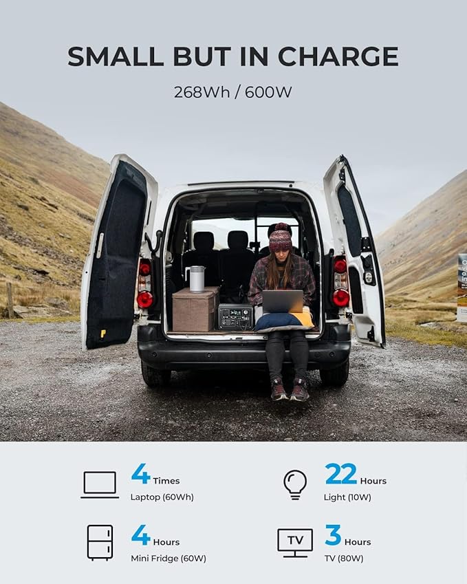 - [Harness the Power of Sun] - This solar generator kit includes 1 EB3A and 1 100W solar panel, enabling you to replenish this 268Wh solar generator from 0-80% in 2.6 hrs — all by solar energy.