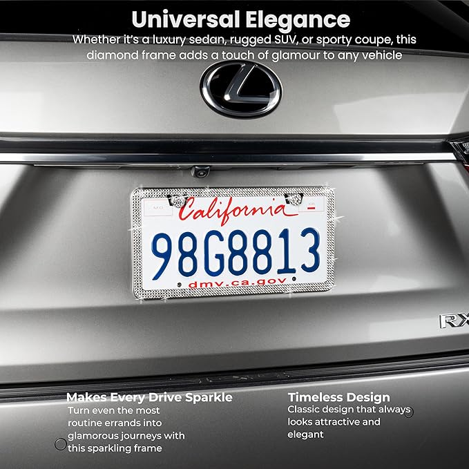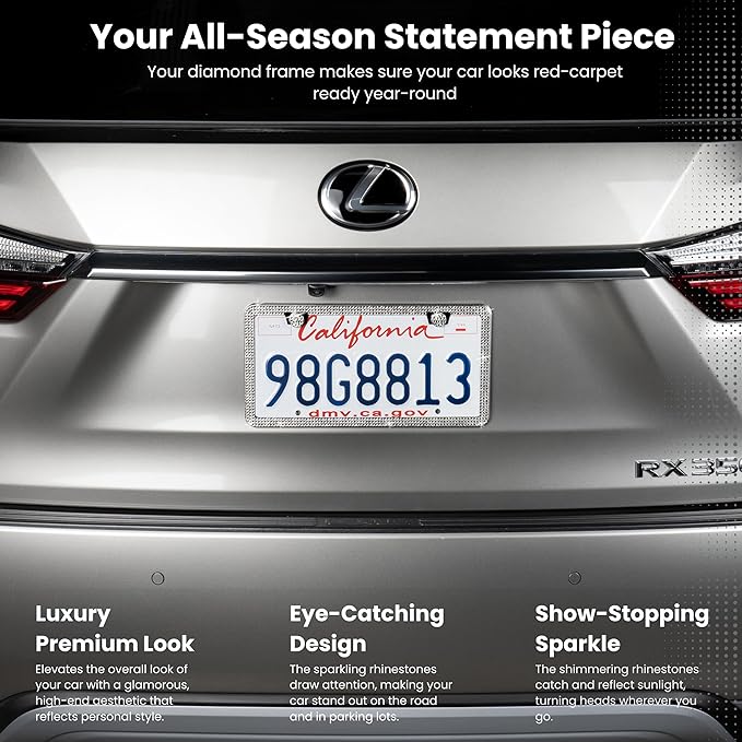 - Premium grade crystal rhinestone that guarantee your license plate frame to sparkle diamonds.