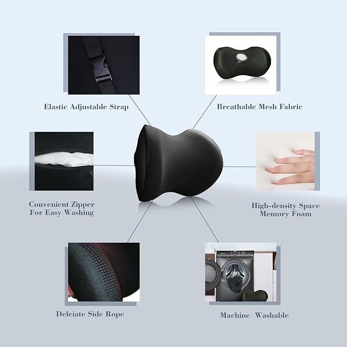 - ππ¬π¬% π£π¨π₯π π¦π£πππ π ππ π’π₯π¬ ππ’ππ - Our car headrest pillow are made of high-quality space memory foam, which is soft and comfortable. Car seat neck pillow provide good support for your cervical spine and head, help you maintain a correct driving posture, make your driving safer, reduce neck pain and comfort your neck.