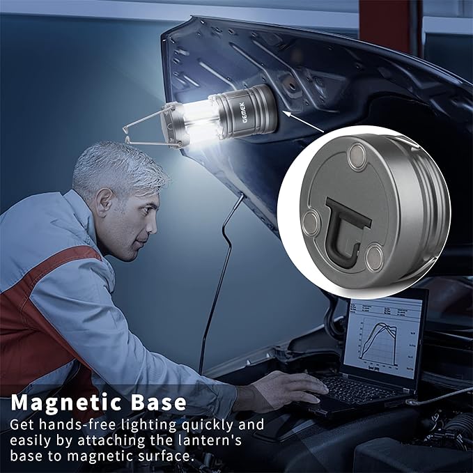 - ✔【Ultra Bright Camping Lantern】The brightness of GEMEK LED Lanterns can up to 500 lumens and the 3 individual COB strip LEDs can carry 360° of luminous light so that this camping light can easily light up an entire tent or a big range of room while saving energy.
