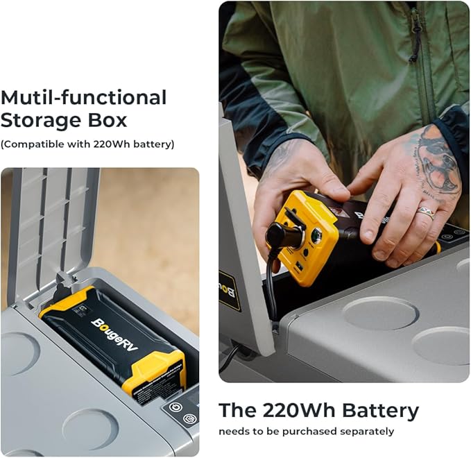 - Generous Storage Box: The CRPRO refrigerator comes with a storage box, you can put the 220Wh power station and accessories into it, which can extend the use time of the refrigerator and prevent the wires from being lost. If you need it, please search "BougeRV 220Wh Portable Power Station" on Amazon