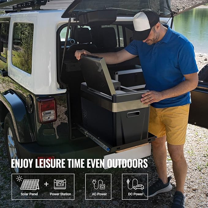 - 45dB Low Noise: The truck freezer is designed to run with low noise to make sure you have a good sleep after long driving. This camping fridge also has a shock-proof design to face the uneven road, operating with no problem in case of a 30 ° inclination when you are off-road