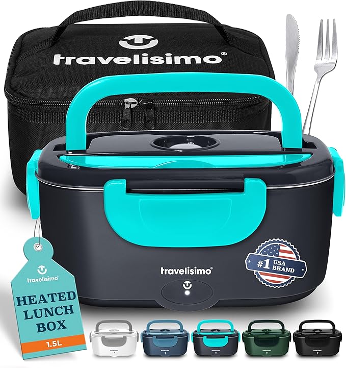 TRAVELISIMO Electric Lunch Box for Adults, 80W Heated Lunch Box 1.5L Stainless Steel Portable Food Warmer, 12/24/110V Lonchera Electrica Portatil for Travel & Work, Loncheras para Hombres de Trabajo