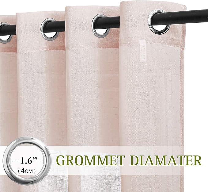 - READY MADE: Package includes 2 flax sheer linen curtain panels, each measures 70"W (140"W for pair), with 8 (1.6" inner diameter) silver grommets to suit with standard or decorative curtain rod.